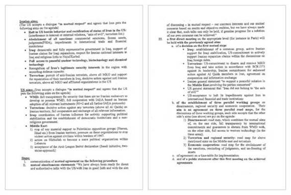 Over the weekend, I and several colleagues finally got our grubby mitts on the full text of the March May 2003 offer that Iran puportedly sent to the US via the Swiss Ambassador.