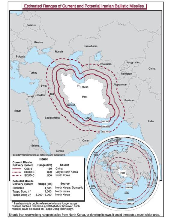 At 1,300 km (the official IC estimate for the Shahab 3), Iran would be able to target most of the Middle East, including Israel.